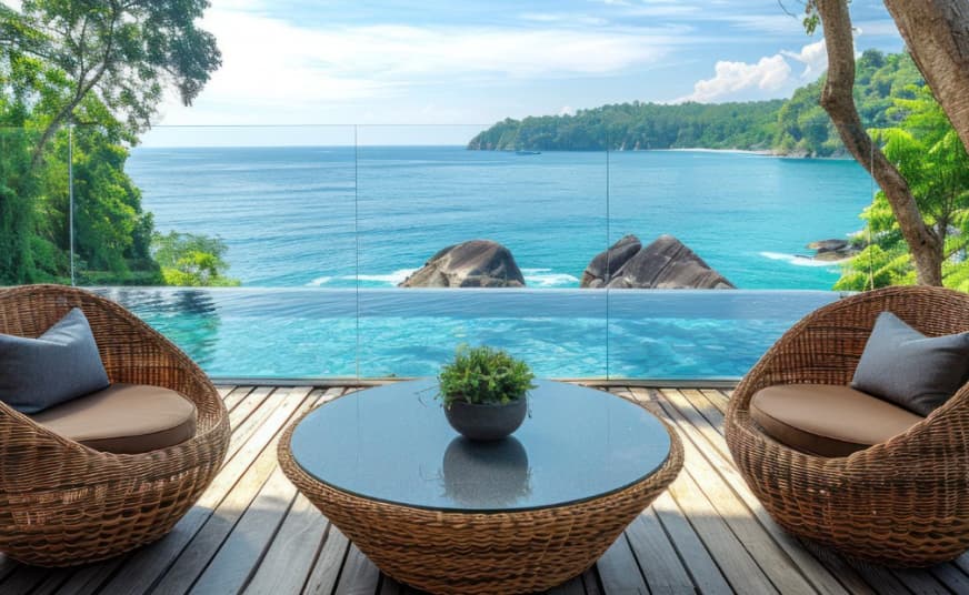 This luxury resort is set on a private island in the South Pacific. The overwater bungalows and beachfront villas offer stunning views of the turquoise lagoon and the surrounding mountains. Highlights: Snorkeling, spa treatments, and romantic dining experiences overlooking the ocean. This luxurious private island resort in Tetiaroa offers pristine beaches and a lagoon with incredible ocean views. It’s an eco-friendly resort focused on sustainability. Highlights: Snorkeling, kayaking, and luxurious spa treatments with an ocean backdrop.